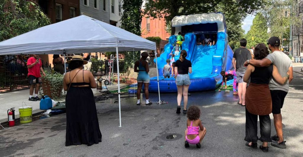 The block party included salsa lessons by a Cuban American resident, free Henna by Henna Motifs, relay races between the adults and children, and, of course, the amazing inflatable water slide was a big hit! The joy on the children’s faces highlighted the importance of block associations coming together to create positive experiences on their block and in their community. These children were not only having fun but were also building happy memories with their neighbors, learning the value of teamwork and togetherness. These moments develop stronger connections to their block and foster a true sense of unity and pride in their community.
