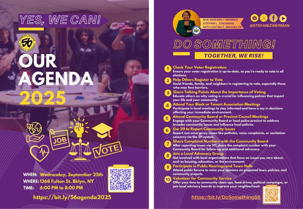 Join us at the Our Agenda 2025 event as we take the next steps in shaping a future where Bedford Stuyvesant, Crown Heights, and communities across New York State remain strong, resilient, and united. Together, we will create a roadmap that not only preserves our progress but propels us forward. Let’s stand united and forge a path toward a brighter, more equitable future.