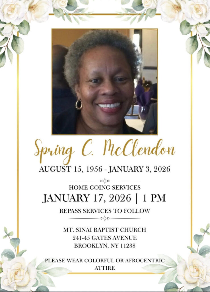 Services will be held on Jan. 17, 2026, 1pm at Mt. Sinai Baptist Church, 241-45 Gates Ave, Brooklyn NY. Please wear colorful and/or Afrocentric Attire.