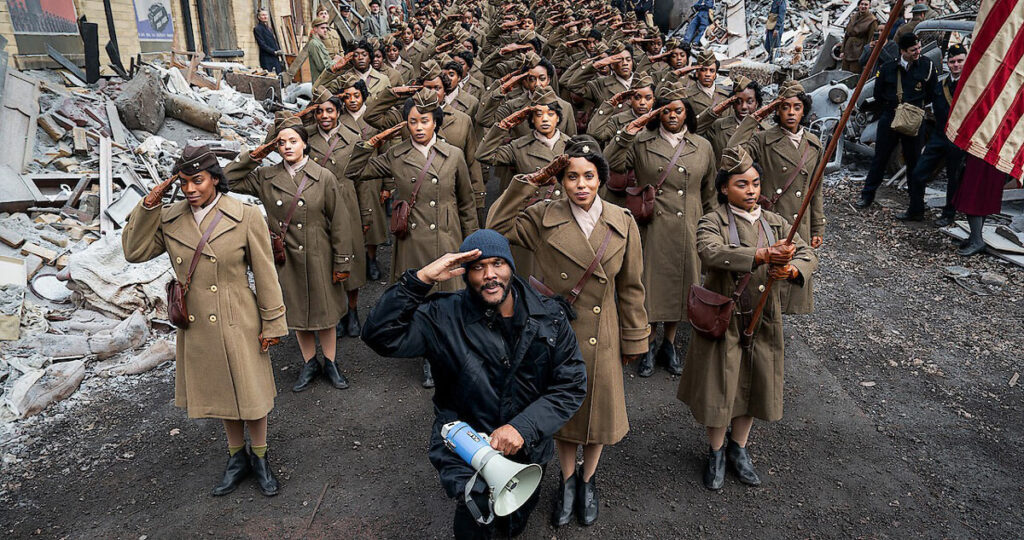 Her remarkable life story in the film tells the true story of the 6888th Central Postal Directory Battalion: the only predominantly Black, all-female battalion during World War II. The service of Charity Adam Early and the battalion paved the way for Hazel Winfred Johnson to become the first Black woman general in the United States Armed Forces in 1979. The film stars Kerry Washington as Major Charity Adams, the battalion’s commanding officer, and Ebony Obsidian as Officer Lena King. Perry also produced the project alongside Nicole Avant, Angi Bones, Tony L. Strickland, Keri Selig, and Carlota Espinosa.