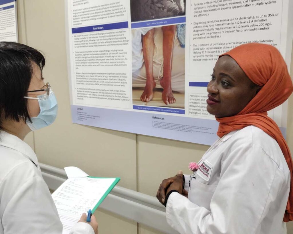 Other projects included a 53-year-old man who had a stroke after cocaine use and later developed compartment syndrome in which increased pressure led to insufficient blood supply to the tissue that can cause irreversible muscle and nerve damage; laughter intervention to address nurse burnout; substance use in heart failure; autoimmune hepatitis type 1 in a 6-year-old child with sickle cell disease; the role of pharmacists in diabetes treatment; a rare noncancerous facial tumor in a non-compliant patient; bleeding in the lungs caused by fentanyl inhalation; pediatric caregiver perception towards Covid-19 pandemic and vaccination of pediatric population; and malnutrition and failure to thrive in African American children.